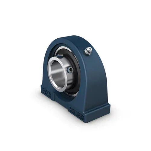 واحدهای بلبرینگ بلوکی بالشی پایه کوتاه (پلامر) شامل یک بلبرینگ داخلی است که در یک محفظه چدنی نصب شده است. این نوع دارای سوراخهای رزوهدار برای پیچهای اتصال است و برای کاربردهایی که جهت چرخش ثابت یا متناوب است مناسب است. دارای یک حلقه داخلی است که از دو طرف امتداد یافته و با سفت کردن دو پیچ تنظیم روی حلقه داخلی به شفت قفل میشود و نصب آن را آسان میکند. این واحدها با استانداردهای صنعتی ژاپن (JIS) مطابقت دارند.