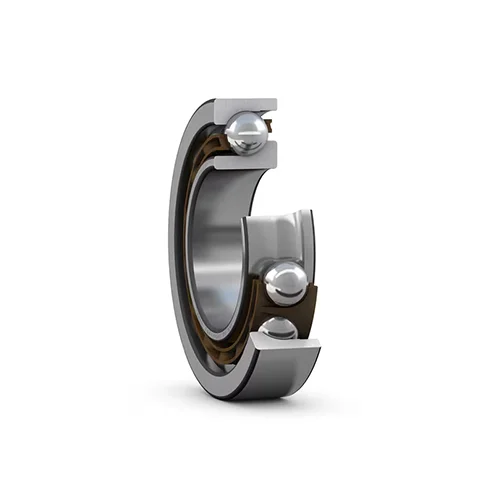 این بلبرینگهای تماس زاویهای تک ردیفه میتوانند بارهای شعاعی و محوری را که به طور همزمان اعمال میشوند، تحمل کنند، در حالی که بار محوری فقط در یک جهت اعمال میشود. آنها میتوانند در سرعتهای بالا و بسته به نوع، حتی در سرعتهای بسیار بالا نیز کار کنند. آنها برای پشتیبانی از نیروهای محوری بزرگ که در یک جهت اعمال میشوند، نسبت به بلبرینگهای شیار عمیق مناسبتر هستند.